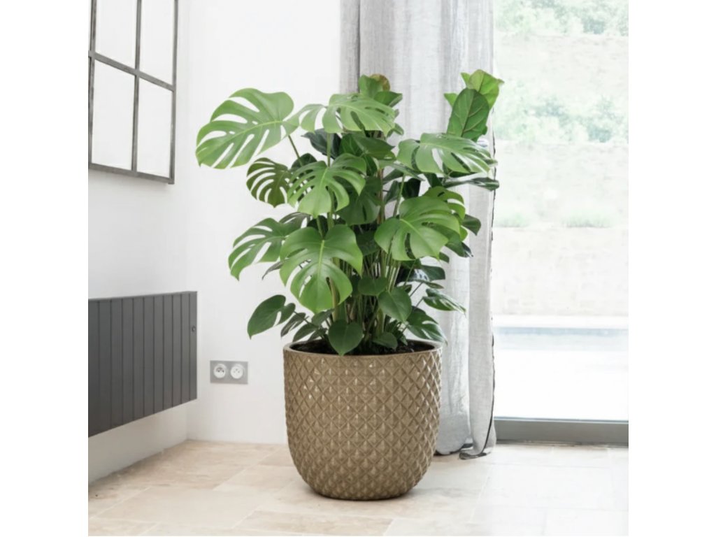 Vďaka odolnému materiálu a kvalitnej glazúre je ideálny na vonkajšie použitie – odolá dažďu, slnku i mrazu, pričom si zachová svoj pôvab po mnoho rokov. Vo farbe brúseného bronzu pôsobí sviežo a energicky, dodáva záhrade aj terase živý stredomorský nádych.