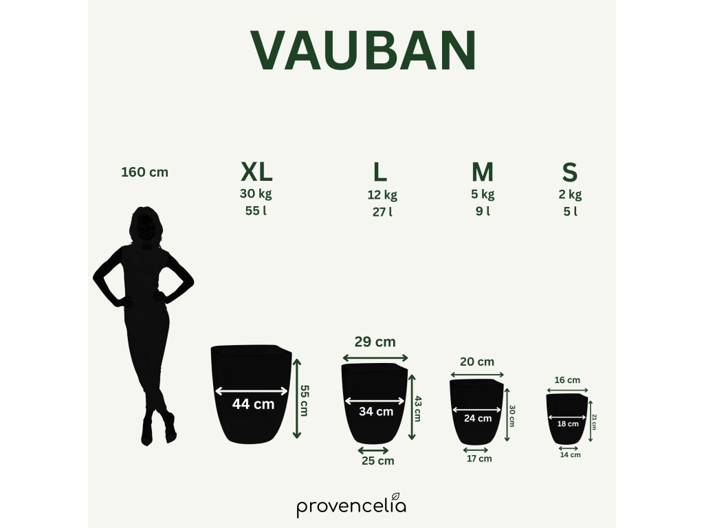 Dodajte svojej záhrade alebo interiéru sofistikovaný a nadčasový vzhľad s ručne vyrábaným kvetináčom VAUBAN. Tento kvetináč, inšpirovaný tradičným štýlom Anduze, je vyrobený z glazovanej terakoty, ktorá je mrazuvzdorná a odolná voči poveternostným vplyvom, čo zaisťuje jeho dlhú životnosť vo vonkajšom prostredí. Vďaka dostupnosti vo viacerých veľkostiach s výškou až 43 cm a priemerom 34 cm je perfektnou voľbou pre akýkoľvek priestor. Odvodňovací otvor zaisťuje optimálnu starostlivosť o rastliny. Každý kvetináč je ručne vyrobený, čo z neho robí originálny a autentický dizajnový doplnok. Je tiež skvelou voľbou ako darček pre zvláštne príležitosti vďaka svojej kvalitnej konštrukcii a nadčasovej estetike.