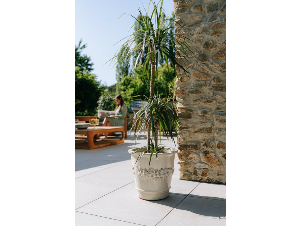 Objavte kvetináč Rousseau, ktorý vnesie do vašej záhrady alebo na terasu jedinečnú eleganciu. Tento ručne vyrábaný kus z glazovanej terakoty je zdobený jemným reliéfom s motívom girlandy a svojou klasickou siluetou pripomína tradičný stredomorský štýl. Každý kvetináč je originál, tvarovaný a glazovaný ručne, vďaka čomu má svoj vlastný charakter. Glazovaná terakota je mrazuvzdorná a odolná voči poveternostným vplyvom, takže si môžete byť istí jej dlhou životnosťou. Krémová glazúra vytvára pôsobivý kontrast so zeleňou rastlín a dodáva vašej záhrade moderný akcent. Rousseau je dostupný vo viacerých veľkostiach, takže ho ľahko zladíte s akýmkoľvek priestorom.