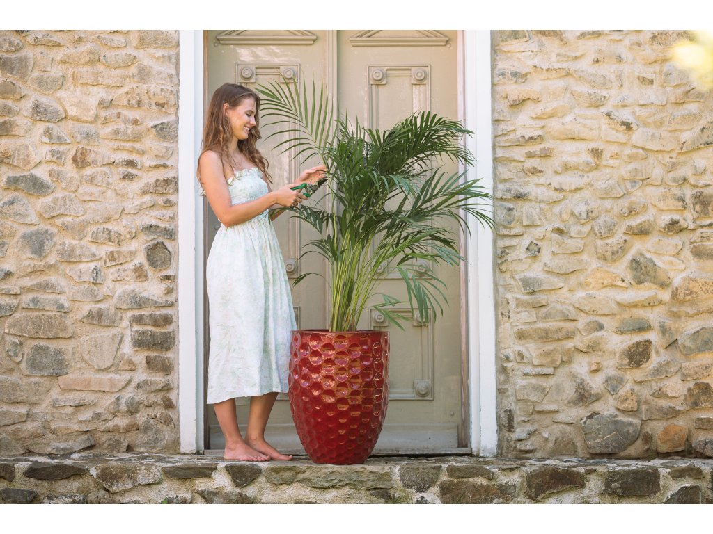 Obohaťte svoju záhradu o nadčasový štýl s ručne vyrábaným kvetináčom Merovee. Tento kvetináč, inšpirovaný tradičným štýlom Anduze, je starostlivo vytvorený z glazovanej terakoty, ktorá je odolná voči mrazu a poveternostným vplyvom. Na výber máte z niekoľkých veľkostí - od S až po XL s výškou až 65 cm a priemerom 55 cm vyniká svojou nezameniteľnou imitáciou hrdze a unikátnym dizajnom, ktorý podčiarkujú čistotu a jednoduchosť. Kvetináč Merovee je vhodný na vonkajšie aj vnútorné použitie, s otvorom na dne pre prirodzený odtok prebytočnej vody. Každý kus je ručne vyrábaný, čo z neho robí jedinečný a autentický doplnok vášho vonkajšieho priestoru. Vďaka svojej kvalitnej konštrukcii a nadčasovému designu je tiež skvelým darčekom pre zvláštne príležitosti.
