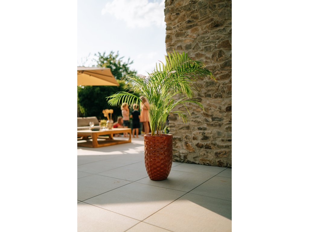 Obohaťte svoju záhradu o nadčasový štýl s ručne vyrábaným kvetináčom Merovee. Tento kvetináč, inšpirovaný tradičným štýlom Anduze, je starostlivo vytvorený z glazovanej terakoty, ktorá je odolná voči mrazu a poveternostným vplyvom. Na výber máte z niekoľkých veľkostí - od S až po XL s výškou až 65 cm a priemerom 55 cm vyniká svojou nezameniteľnou imitáciou hrdze a unikátnym dizajnom, ktorý podčiarkujú čistotu a jednoduchosť. Kvetináč Merovee je vhodný na vonkajšie aj vnútorné použitie, s otvorom na dne pre prirodzený odtok prebytočnej vody. Každý kus je ručne vyrábaný, čo z neho robí jedinečný a autentický doplnok vášho vonkajšieho priestoru. Vďaka svojej kvalitnej konštrukcii a nadčasovému designu je tiež skvelým darčekom pre zvláštne príležitosti.