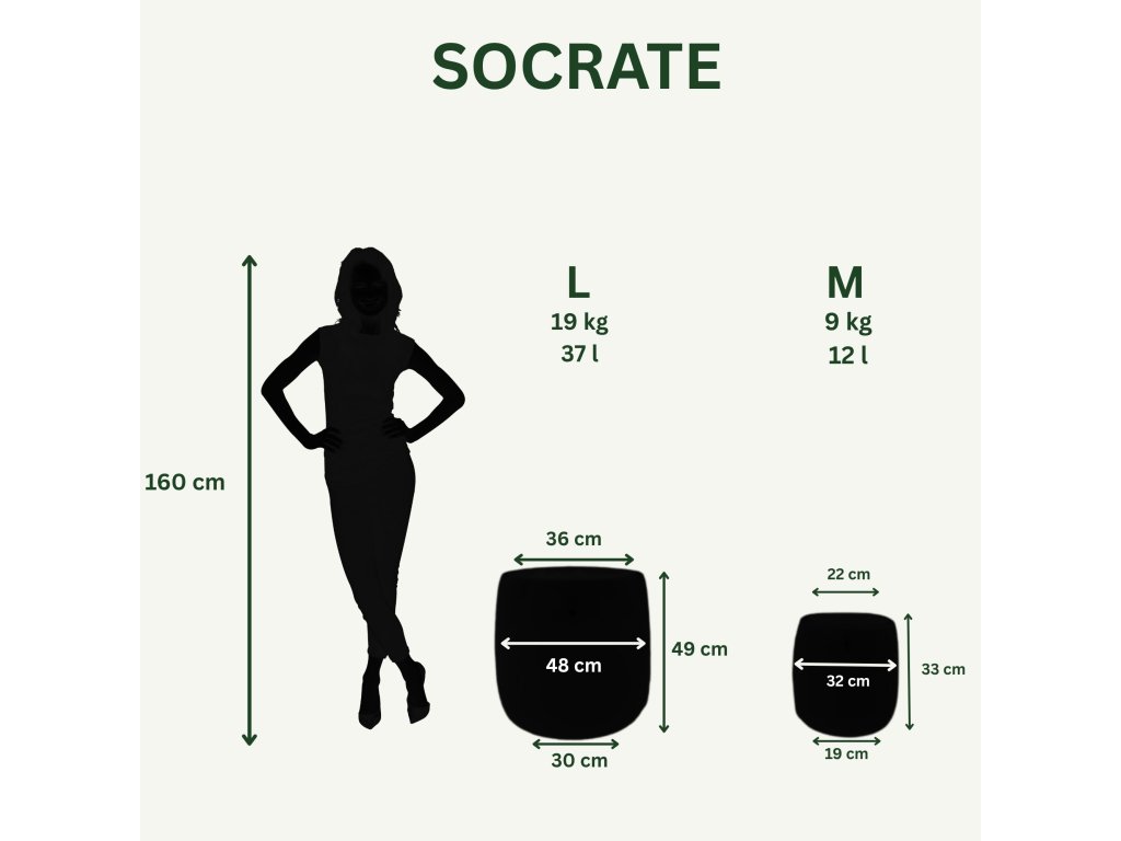 Ručne vyrábaný keramický kvetináč Socrate prináša do priestoru modernú eleganciu s nádychom tradičného remesla. Je vyrobený z glazovanej keramiky, odolný voči mrazu a poveternostným vplyvom. Dostupný v dvoch veľkostiach (M a L) a vhodný na vonkajšie aj vnútorné použitie vďaka praktickému odvodňovaciemu otvoru. Štýlový a trvanlivý doplnok pre každý interiér aj záhradu.