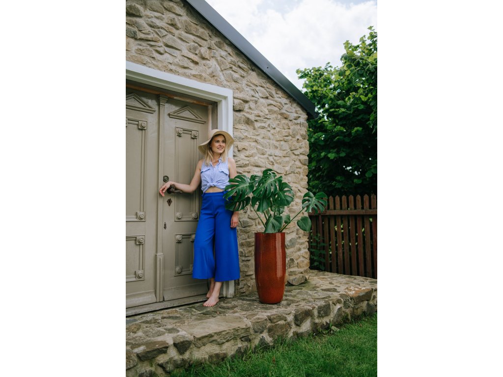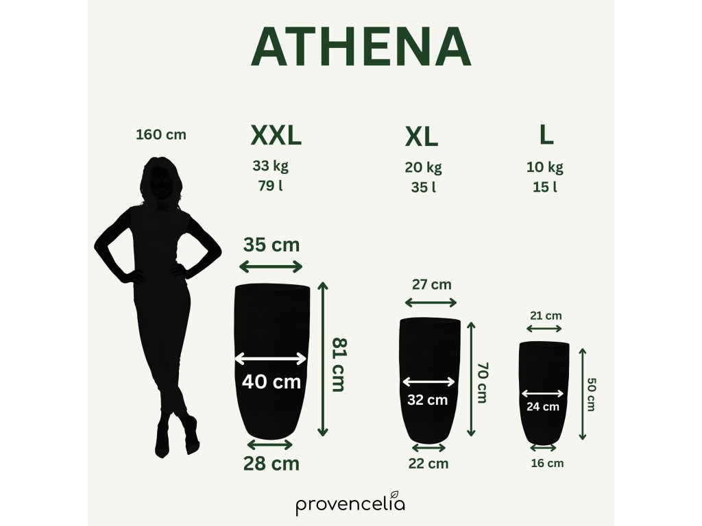 Obohaťte svoju záhradu o eleganciu s ručne vyrábaným kvetináčom Athena. Tento kvetináč, inšpirovaný klasickými stredomorskými tvarmi, je starostlivo vytvorený z glazovanej terakoty odolnej voči mrazu a poveternostným vplyvom. Na výber je v niekoľkých veľkostiach – od M až po XL – a jeho jemná svetlomodrá farba dodá priestoru hrejivý a živý charakter. Kvetináč Athena je vhodný ako na vonkajšie, tak aj vnútorné použitie, s praktickým otvorom na dne pre prirodzený odtok prebytočnej vody. Každý kus je originál, ručne vyrábaný skúsenými remeselníkmi, a preto nesie jedinečný charakter a autentickosť. Vďaka svojej kvalite a nadčasovému vzhľadu sa stane nielen funkčným prvkom, ale aj štýlovou dominantou vášho domova či záhrady.