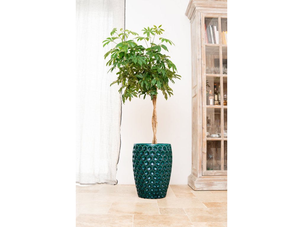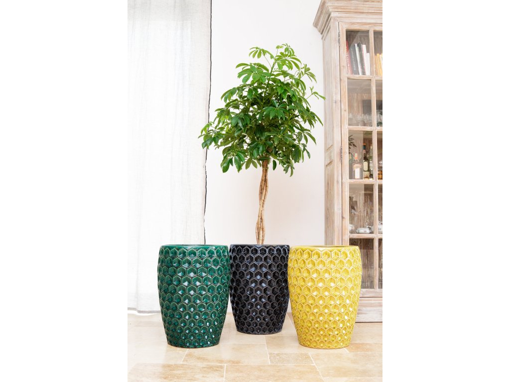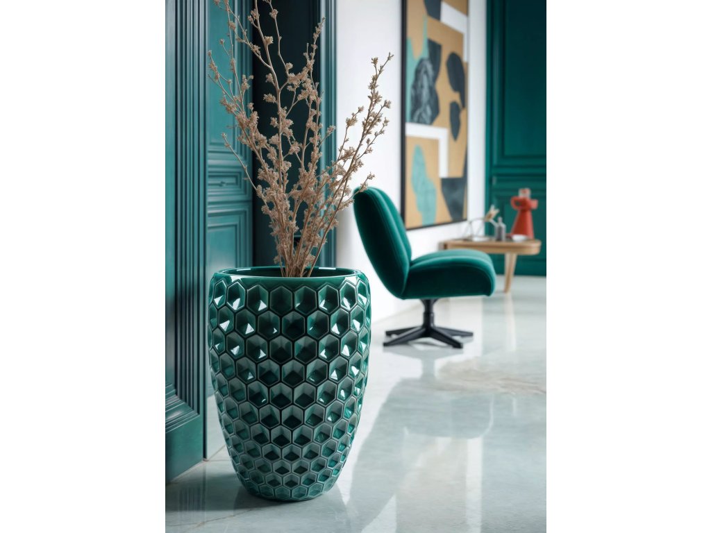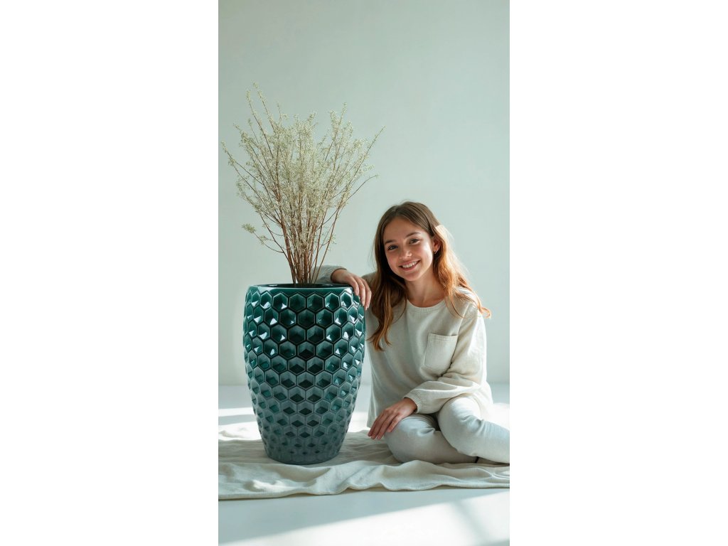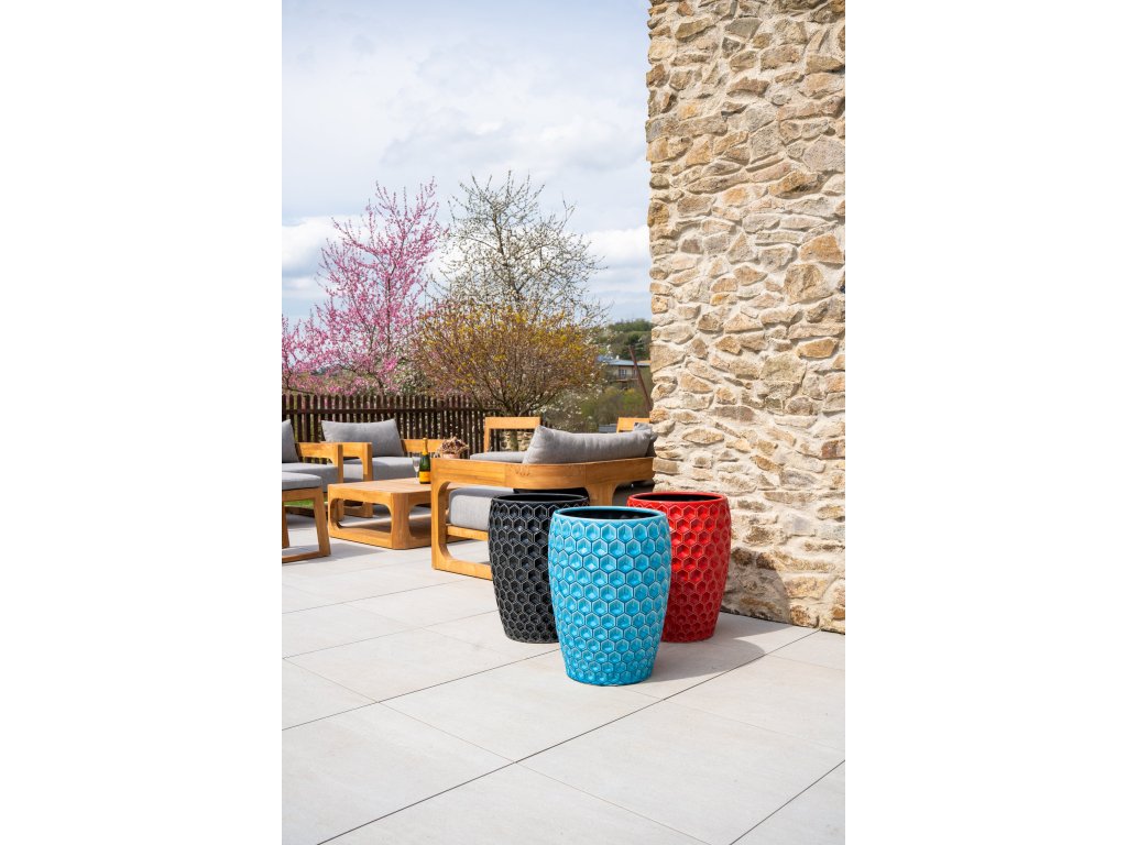 Tento elegantný keramický kvetináč s výrazným plastickým vzorom dodá vášmu interiéru aj exteriéru energiu, štýl a luxusný nádych. Vďaka výške 53 cm a objemu 35 litrov je ideálny pre stredne veľké až väčšie rastliny, ktoré v ňom krásne vyniknú. Reliéfny šesťhranný vzor vytvára pútavé svetelné odlesky a robí z kvetináča Versailles skutočný dizajnový klenot. Je vyrobený z kvalitnej mrazuvzdornej keramiky, a preto je vhodný ako pre vnútorné priestory, tak aj na použitie na terase, balkóne či záhrade. Štýl aj funkčnosť si tak môžete užívať po celý rok.