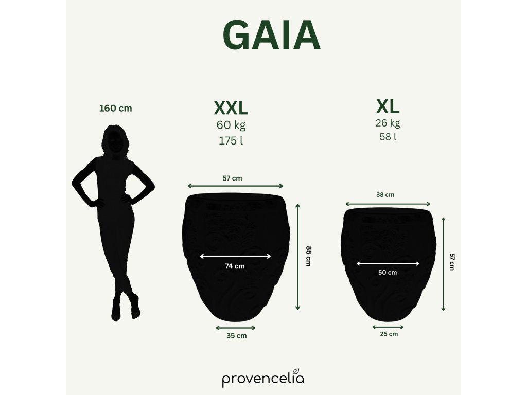 Prineste svojmu záhradnému priestoru nádych nadčasovej elegancie s kvetináčom Gaia. Tento impozantný kvetináč, ručne vyrobený s dôrazom na tradičné remeselné postupy, ponúka nielen krásny vzhľad, ale aj ohromnú veľkosť ktorá pojme aj väčšie stromy. Kvetináč Gaia, merací až 85 cm na výšku a až 80 cm v priemere, s váhou až 70 kg, je ideálny na presádzanie veľkých rastlín, vrátane tých s bujným lístím. Jeho čisté línie a čistá krémová farba dodajú vašej záhrade sofistikovaný vzhľad.