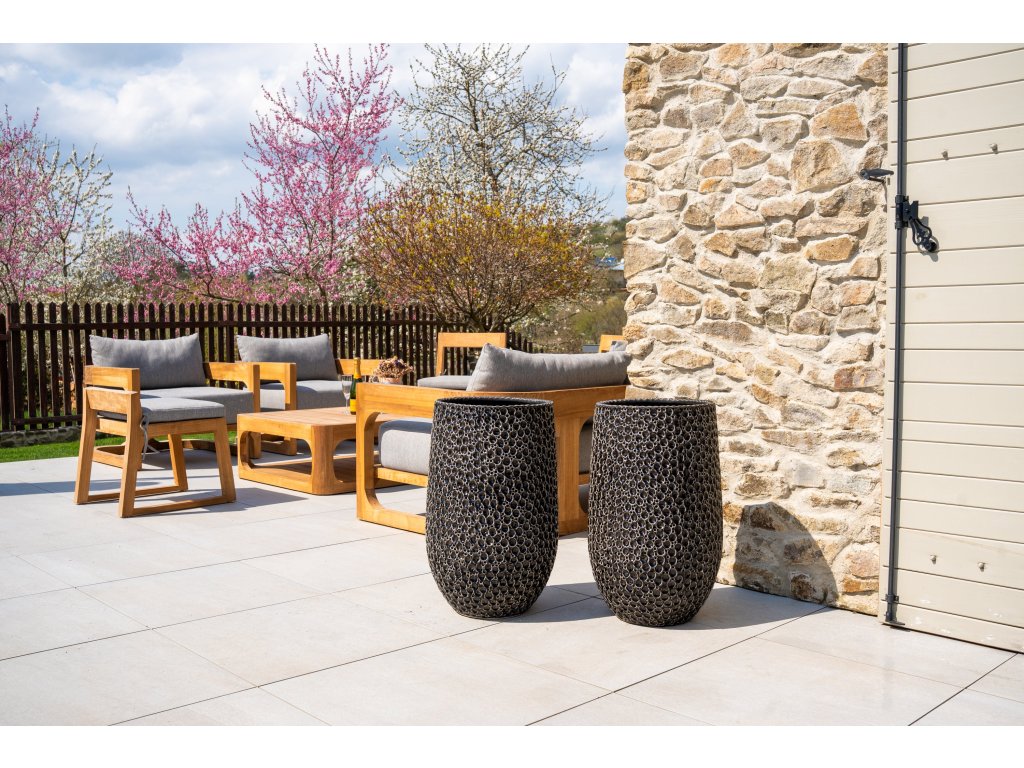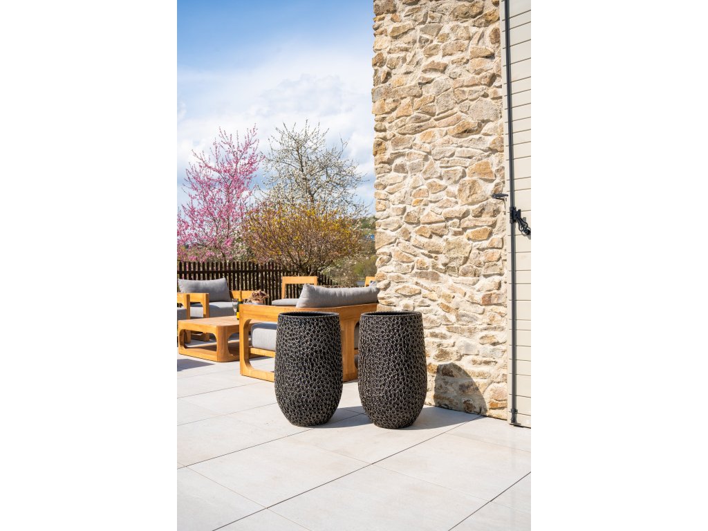 Tento elegantný keramický kvetináč s plastickým, štruktúrovaným povrchom dodá vášmu interiéru či exteriéru moderný a luxusný vzhľad. Vďaka výške 63 cm a objemu 34 litrov je ideálny pre väčšie rastliny, ktoré si zaslúžia dôstojný priestor na rast aj prezentáciu. Štruktúrovaný povrch kvetináča vytvára atraktívne svetelné odlesky a robí z neho výnimočný dizajnový prvok. Je vyrobený z kvalitnej mrazuvzdornej keramiky, a tak sa skvele hodí ako do interiéru, tak aj na terasu, balkón alebo záhradu. Užite si krásu a funkčnosť po celý rok!