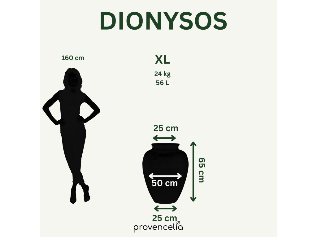 Vneste do svojej záhrady klasickú eleganciu s ručne vyrábaným kvetináčom Dionysos. Tento veľký kvetináč z glazovanej terakoty v jemnom odtieni so železnou patinou pôsobí noblesne a zároveň prirodzene. Vďaka svojim rozmerom – výška 65 cm a priemer 50 cm – sa stane výrazným stredobodom vašej záhrady, terasy alebo vstupného priestoru. Dionysos je mrazuvzdorný a odolný voči poveternostným vplyvom, čo zaručuje jeho dlhú životnosť aj pri celoročnom vonkajšom použití. V spodnej časti je opatrený otvorom pre prirodzený odtok prebytočnej vody. Každý kus je starostlivo ručne vyrábaný, vďaka čomu získava svoj autentický a jedinečný charakter. Tento kvetináč je nielen funkčným prvkom na výsadbu, ale aj dekoratívnym doplnkom, ktorý dodá vášmu priestoru nádych stredomorskej tradície.