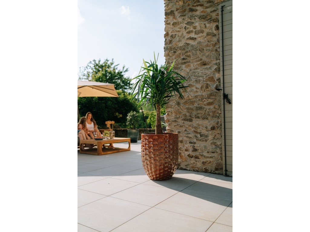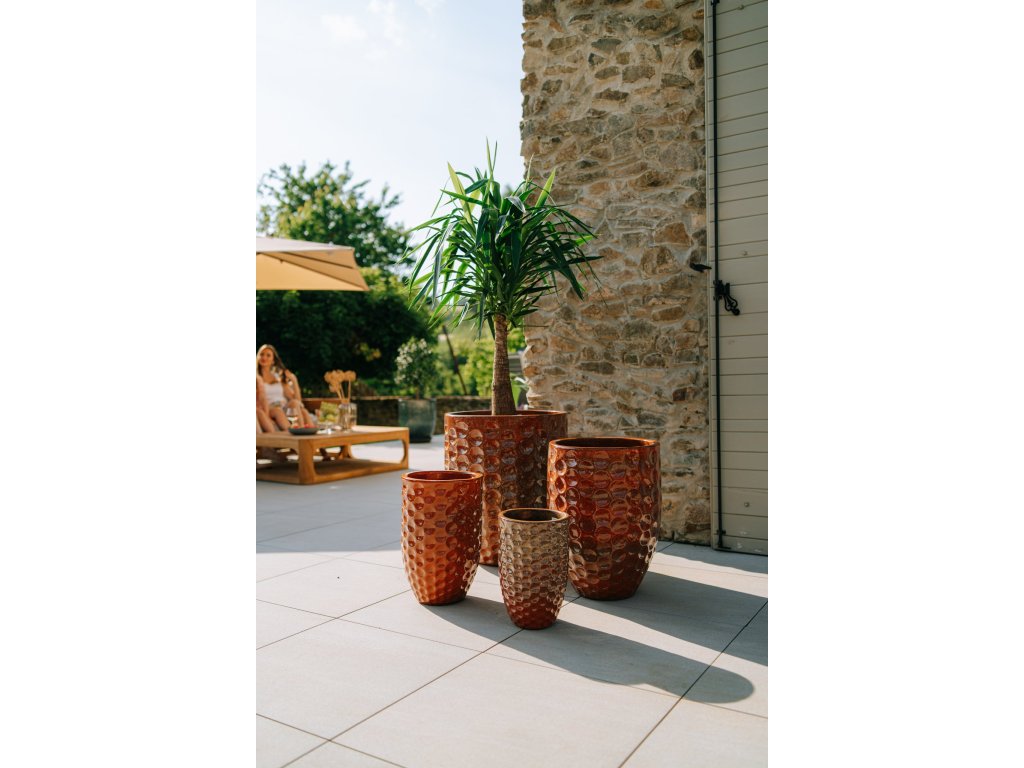 Obohaťte svoju záhradu o nadčasový štýl s ručne vyrábaným kvetináčom Merovee. Tento kvetináč, inšpirovaný tradičným štýlom Anduze, je starostlivo vytvorený z glazovanej terakoty, ktorá je odolná voči mrazu a poveternostným vplyvom. Na výber máte z niekoľkých veľkostí - od S až po XL s výškou až 65 cm a priemerom 55 cm vyniká svojou nezameniteľnou imitáciou hrdze a unikátnym dizajnom, ktorý podčiarkujú čistotu a jednoduchosť. Kvetináč Merovee je vhodný na vonkajšie aj vnútorné použitie, s otvorom na dne pre prirodzený odtok prebytočnej vody. Každý kus je ručne vyrábaný, čo z neho robí jedinečný a autentický doplnok vášho vonkajšieho priestoru. Vďaka svojej kvalitnej konštrukcii a nadčasovému designu je tiež skvelým darčekom pre zvláštne príležitosti.