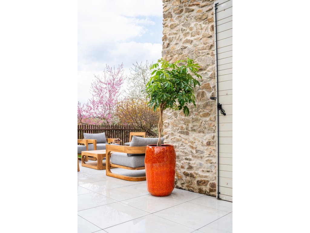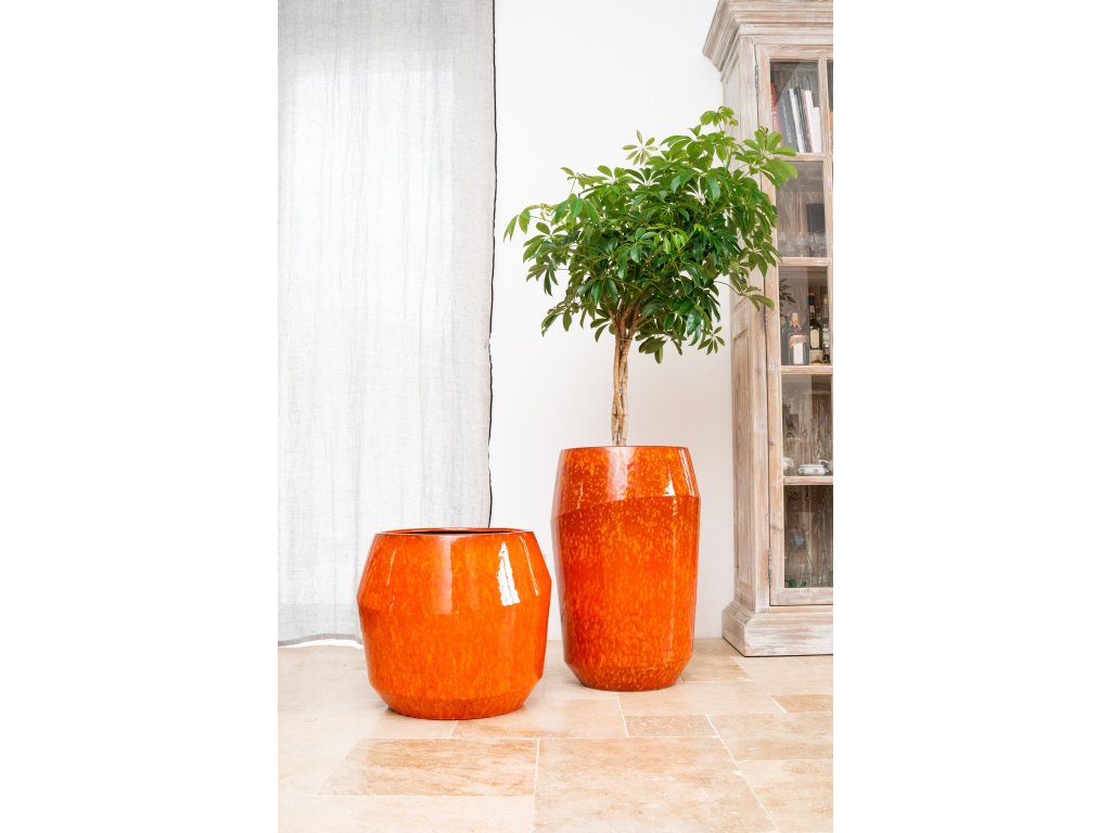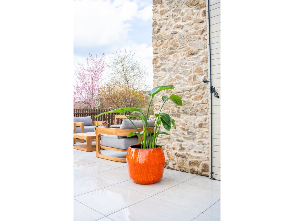 Tento elegantný keramický kvetináč v sýto červeno-oranžovej glazúre s jemným žíhaním dodá vášmu interiéru aj exteriéru energiu, teplo a výrazný štýlový akcent. Vďaka dvom veľkostiam – L (44 cm výška) a XXL (67 cm výška) – si ľahko vyberiete ideálny variant pre rôzne typy rastlín. Okrúhly tvar so zalomeným profilom pôsobí moderne a stabilne, a hladká glazúra krásne odráža svetlo, čo z neho robí výrazný dekoratívny prvok. Kvetináč Monaco je vyrobený z odolnej, mrazuvzdornej keramiky a hodí sa ako do interiéru, tak aj na balkón, terasu alebo záhradu. Krásu a funkčnosť si môžete vychutnať po celý rok.