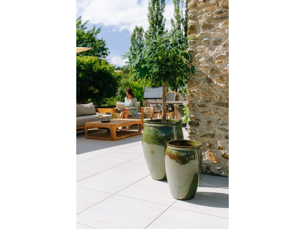 Obohaťte svoju záhradu o nadčasový štýl s ručne vyrábaným kvetináčom Bacchus. Tento kvetináč, inšpirovaný tradičným štýlom Anduze, je starostlivo vytvorený z glazovanej terakoty, ktorá je odolná voči mrazu a poveternostným vplyvom. Na výber máte z dvoch veľkostí - od XL až po XXL s výškou až 68 cm a priemerom 50 cm vyniká svojou tropicko zelenou farbou a čistým dizajnom, ktorý podčiarkuje jednoduchosť. Kvetináč Bacchus je vhodný na vonkajšie aj vnútorné použitie, s otvorom na dne pre prirodzený odtok prebytočnej vody. Každý kus je ručne vyrábaný, čo z neho robí jedinečný a autentický doplnok vášho vonkajšieho priestoru. Vďaka svojej kvalitnej konštrukcii a nadčasovému designu je tiež skvelým darčekom pre zvláštne príležitosti.