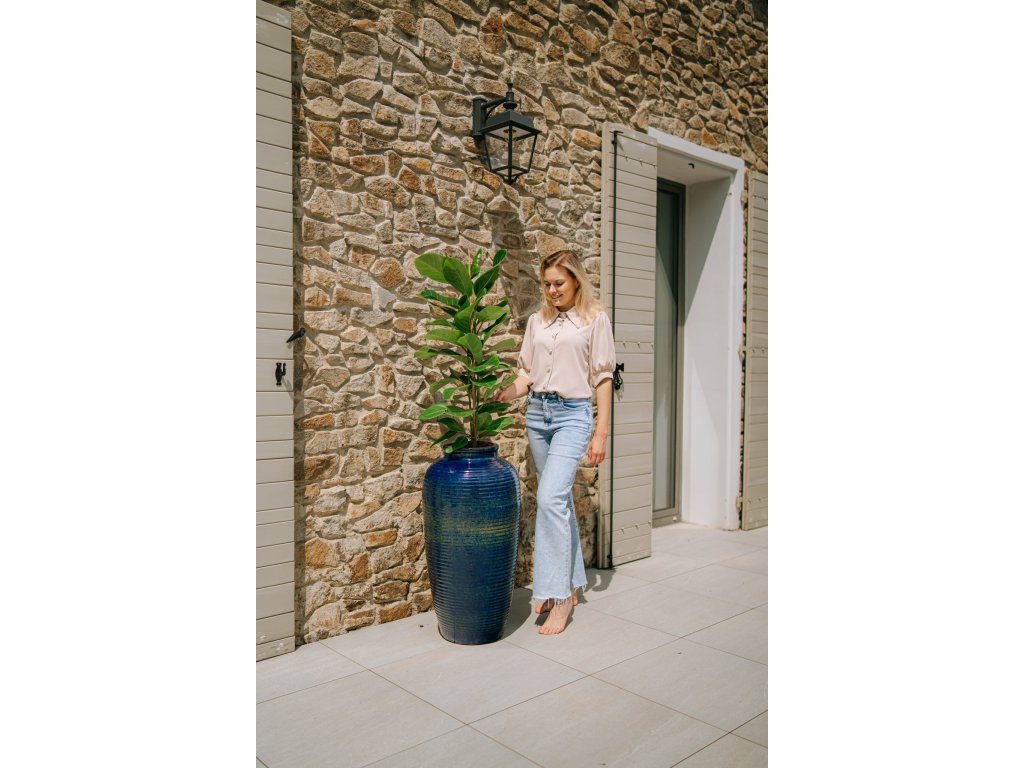 Obohaťte svoju záhradu o nadčasovú eleganciu s ručne vyrábaným kvetináčom Archimede. Tento vysoký kvetináč z glazovanej terakoty v tropickej morsky modrej farbe je inšpirovaný tradičnými stredomorskými tvarmi a je odolný voči mrazu aj poveternostným vplyvom. Vďaka svojej výške 83 cm a priemeru 40 cm sa stane výraznou dominantou vášho vonkajšieho priestoru. Archimed je ideálny pre vonkajšie aj vnútorné použitie, vybavený otvorom na dne pre prirodzený odtok prebytočnej vody. Každý kus je originál - starostlivo ručne vyrábaný, čo zaručuje jeho jedinečný charakter a autenticitu. Vďaka kvalitnej konštrukcii a osobitému dizajnu je nielen funkčným, ale aj estetickým prvkom, ktorý skvele doplní terasu, záhradu či vstupný priestor. Tento kvetináč je tiež výnimočným darčekom pre milovníkov záhradnej architektúry a elegantného štýlu.