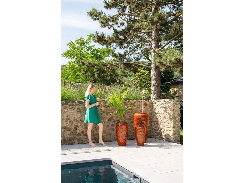 Obohaťte svoju záhradu o nadčasový štýl s ručne vyrábaným kvetináčom Pompadour. Tento kvetináč, inšpirovaný tradičným štýlom Anduze, je starostlivo vytvorený z glazovanej terakoty, ktorá je odolná voči mrazu a poveternostným vplyvom. Na výber máte z niekoľkých veľkostí - od L až po XXL s výškou až 68 cm vyniká svojou nádhernou farbou a čistým designom ktorým podčiarkuje čistotu a jednoduchosť tohto kvetináča. Kvetináč Pompadour je vhodný na vonkajšie aj vnútorné použitie, s otvorom na dne pre prirodzený odtok prebytočnej vody. Každý kus je ručne vyrábaný, čo z neho robí jedinečný a autentický doplnok vášho vonkajšieho priestoru. Vďaka svojej kvalitnej konštrukcii a nadčasovému designu je tiež skvelým darčekom pre zvláštne príležitosti.